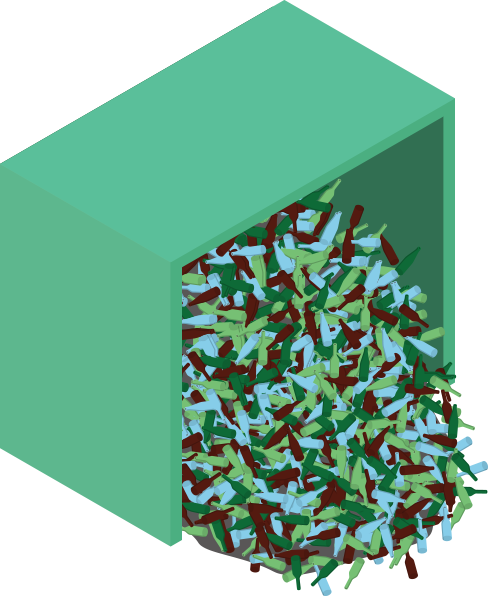 回収後、分別されたガラスびんは、一旦ここに集められ保管されます。