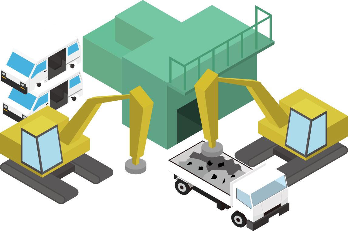 建造物・機械設備・金属屑などの解体工事から排出される一般廃材の鉄スクラップや家庭から発生する鉄くずを、ギロチンシャーを用いて裁断する設備です。