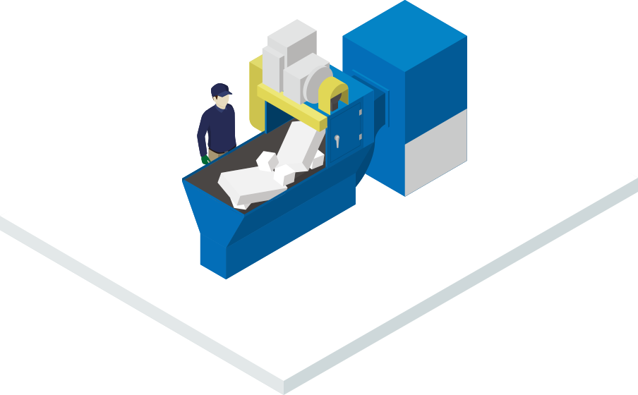 発泡スチロール専用の減容固化機を使って熱融解し、その後、固化させてインゴットを作り出す施設です。